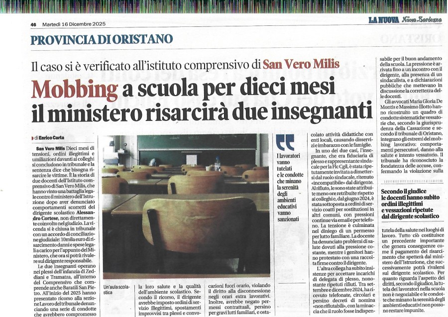 La GILDA, insieme alla CGIL, aveva denunziato lo stesso Dirigente per comportamento antisindcale. Una volta trasferito il Dirigente a Bosa, è stato dichiarato cessato il motivo del contendere e la causa non è andata avanti.